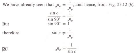 Let’s really break down what the angle of incidence is equal to the critical angle means for the angle of refraction. Remember Snell’s Law, right? It’s the golden rule for refraction: \(n_1 \sin(\theta_1) = n_2 \sin(\theta_2)\) . Here, \(n_1\) and \(n_2\) are the refractive indices of the two mediums, and \(\theta_1\) and \(\theta_2\) are the angles of incidence and refraction, respectively, measured from the normal. Now, the critical angle, often denoted as \(\theta_c\) , is a special value of \(\theta_1\) . It only exists when light is moving from a medium with a higher refractive index to one with a lower refractive index (e.g., from glass to air, \(n_1 > n_2\) ). At this critical angle, the refracted ray just grazes the surface separating the two media. Think about it: the light is bending as far away from the normal as it possibly can while still exiting the first medium. If it bent any further, it would just have to bounce back. So, when \(\theta_1 = \theta_c\) , Snell’s Law becomes \(n_1 \sin(\theta_c) = n_2 \sin(\theta_2)\) . Since the light is traveling along the boundary, the angle of refraction, \(\theta_2\) , is precisely 90 degrees. Plugging this into Snell’s Law, we get \(n_1 \sin(\theta_c) = n_2 \sin(90^\circ)\) . And since \(\sin(90^\circ)\) is just 1, the equation simplifies to \(n_1 \sin(\theta_c) = n_2\) . Rearranging this gives us the formula for the critical angle: \(\sin(\theta_c) = n_2 / n_1\) . This equation is super important because it tells us that the critical angle depends only on the refractive indices of the two materials involved. For example, for light going from water ( \(n \approx 1.33\) ) to air ( \(n \approx 1.00\) ), the critical angle is \(\sin(\theta_c) = 1.00 / 1.33\) , which means \(\theta_c \approx 48.75^\circ\) . So, if your angle of incidence is exactly 48.75 degrees, your angle of refraction will be exactly 90 degrees. Pretty neat, huh?