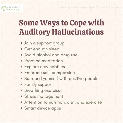 Okay, so if you or someone you know is experiencing auditory hallucinations , how do you cope? First of all, it’s super important to seek professional help. A mental health professional can provide a diagnosis and recommend a treatment plan. This may involve therapy, medication, or a combination of both. Cognitive Behavioral Therapy for Psychosis (CBTp) is a specific type of therapy that’s often very helpful. It teaches people skills to manage their hallucinations and challenge the negative thoughts and beliefs that can come with them.