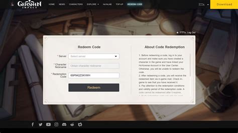 1. Official Genshin Impact Code Redemption Website