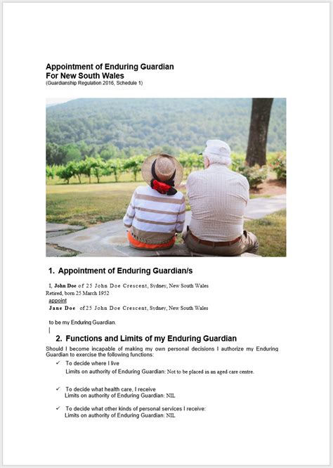 Once you’ve chosen your Enduring Guardian , you’ll need to complete a legal document. This document is called an Appointment of Enduring Guardian form, and it’s available from various sources, including government websites and legal professionals. The form requires you to provide information about yourself, your chosen guardian, and the types of decisions you want them to be able to make on your behalf. You can specify any limitations or conditions you want to place on their authority, ensuring they only act within the scope of your wishes. It’s crucial to fill out the form accurately and completely. Any errors or omissions could invalidate the document, so take your time and double-check everything. You’ll also need to have the document witnessed by an eligible person, such as a lawyer, a justice of the peace, or a notary public. The witness will need to verify your identity and confirm that you understand the document you’re signing. After the document is completed and witnessed, it’s a good idea to give a copy to your Enduring Guardian, your doctor, and any other relevant parties. This ensures that everyone is aware of your wishes and that your guardian has the necessary documentation to act on your behalf when the time comes. It’s also important to review your Enduring Guardian appointment regularly, especially if your circumstances change. If you move, if your relationship with your guardian changes, or if you develop new health conditions, you may need to update the document to reflect your current wishes. Setting up an Enduring Guardian is a proactive step that empowers you to maintain control over your life, even when you can’t directly express your wishes. It’s a way to ensure that your voice is heard and your values are respected, no matter what the future holds. So, take the time to choose your guardian wisely, complete the necessary paperwork, and give yourself and your loved ones the peace of mind that comes with knowing you’re prepared for anything. It’s a valuable investment in your future well-being and a gift to those who care about you most.