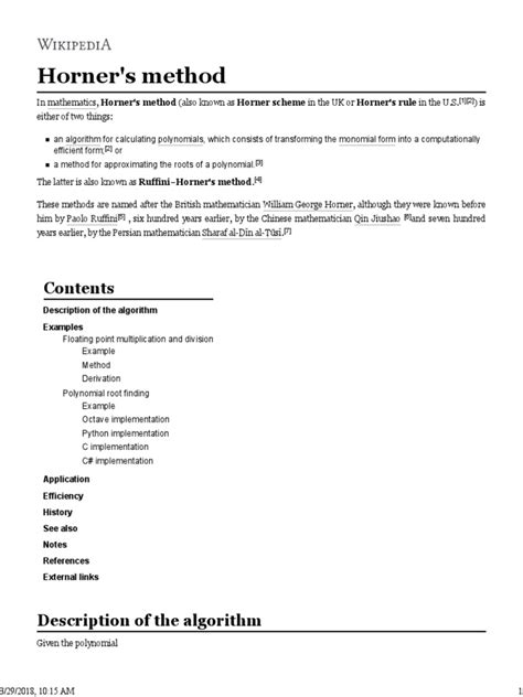 Hey everyone! Today, we’re diving deep into something super cool in the world of math and programming: Horner’s method . You might have stumbled upon it if you’re dealing with polynomials, which are basically expressions like ax^n + bx^(n-1) + … + c. Now, evaluating these bad boys can get a bit tedious, especially when you have high powers. That’s where Horner’s method, also known as Horner’s rule, swoops in to save the day. It’s an incredibly efficient algorithm for polynomial evaluation , meaning it helps us find the value of a polynomial for a given input value much faster than the straightforward approach.