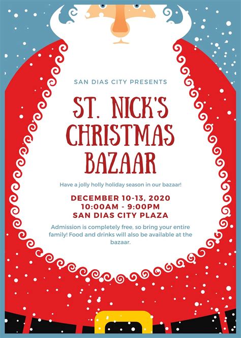 • Holiday Bazaar Poster : Incorporates festive colors, holiday-themed graphics, and a warm and inviting message to get people in the holiday spirit.