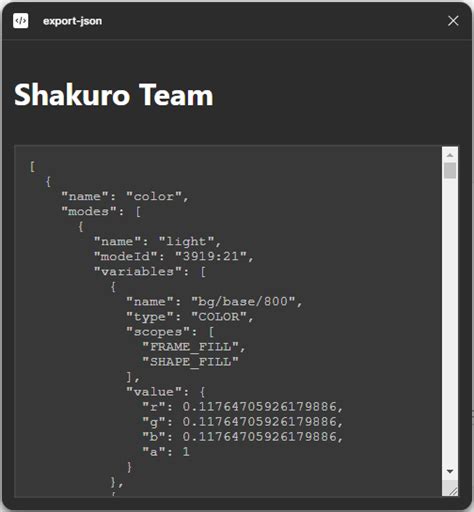 • Automation: Exporting design data as JSON opens the door to automation. You can write scripts to transform the JSON data and generate code, documentation, or other assets.