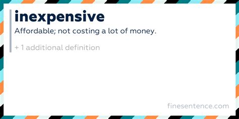 Before we jump into sentence examples, let’s make sure we all know what “ inexpensive ” means. Simply put, “ inexpensive ” means not costing a great deal; cheap or relatively low in price. It’s a handy word to use when you want to convey that something is affordable or a good value for the money. Think of it as the opposite of “ expensive ” – pretty straightforward, right? You might use “ inexpensive ” when talking about anything from groceries to gadgets.