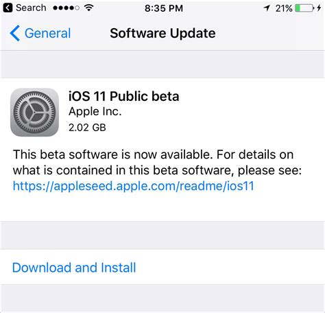 - You should see the iOS Public Beta update available.