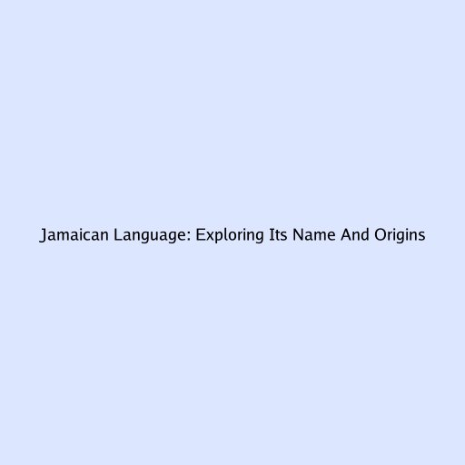 Jamaican Language: Exploring Its Name And Origins