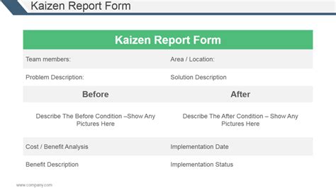 Finally, don’t be afraid to celebrate success. Kaizen is about recognizing and rewarding improvement, so make sure your Kaizen report celebrates the team’s achievements. This will help to build morale and encourage continued participation in Kaizen activities. By following these guidelines, you can create Kaizen reports that are informative, engaging, and effective in driving continuous improvement.
