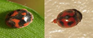 As the name suggests, this ladybug typically has two black spots on its red elytra. However, like the Asian lady beetle, it can also come in different color variations, including black with red spots. The two-spotted ladybug is native to Europe and North America and is another beneficial insect that feeds on aphids.
