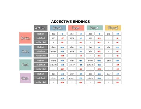 Alright, let’s kick things off by getting to the heart of why German adjective endings are even a thing. In English, adjectives are pretty chill; they just sit there, unchanging, no matter what noun they describe. “The red car,” “the red cars,” “I saw the red car.” Simple, right? Well, German, bless its wonderfully precise heart, isn’t quite so laid-back. In German, adjectives declinate , which basically means they change their form, specifically their endings, to agree with the noun they’re describing. This change depends on a few key factors: the case of the noun (nominative, accusative, dative, genitive), the gender of the noun (masculine, feminine, neuter), and the number of the noun (singular or plural). Yep, it’s a trifecta of grammatical fun! Now, before you groan, think about it this way: these German adjective endings provide a ton of extra information, making sentences incredibly clear and unambiguous. It’s a system designed for precision, even if it feels a bit overwhelming at first. The big picture here is that adjectives act like little chameleons, adapting their tail-ends to match the environment (the noun and its role in the sentence). This is often where learners get tripped up, because if you get the ending wrong, while people will usually understand you, it just doesn’t sound right, and it can even subtly change the meaning or sound awkward. We’ll be looking at three main types of adjective declension : strong , weak , and mixed . Each type has its own set of rules and, you guessed it, its own set of adjective endings . The type of declension you use depends primarily on whether there’s an article (like “the” or “a”) or a determiner (like “this” or “my”) before the adjective, and if so, what kind of article it is. This might sound like a lot to juggle, but once you get the hang of the patterns, it’s actually quite logical and systematic. We’re going to break down each of these declension types in detail, giving you clear examples and actionable tips. So, take a deep breath; understanding why these endings exist is the first crucial step to truly mastering them. It’s all about making your German sound natural and correct, and trust me, guys, that feeling when you nail an adjective ending is chef’s kiss !