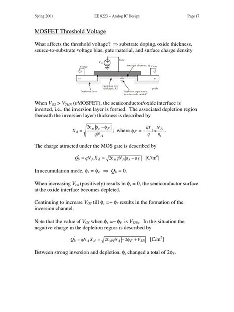 Furthermore, stray charges trapped in the gate oxide or at the oxide-semiconductor interface can significantly alter the threshold voltage. These trapped charges can either add to or subtract from the effective gate voltage required to form the channel. Process variations during manufacturing, such as variations in ion implantation doses or annealing temperatures, can lead to shifts in Vth across a wafer or between different batches of devices. This is why manufacturers often specify a Vth range rather than a single exact value. Parasitic effects and device geometry can also subtly influence Vth. For instance, short-channel effects in modern, highly scaled MOSFETs can lead to a reduction in Vth. Reliability concerns , such as hot carrier injection or bias-temperature stress, can also cause Vth to drift over time. Therefore, designers must consider not only the nominal Vth but also its potential variation and drift when designing circuits. This often involves using design margins and employing circuit techniques that are less sensitive to Vth variations. It’s a complex interplay of physics and manufacturing , but it all boils down to controlling the electric field at the gate to invert the semiconductor channel. Pretty neat, huh? The ability to control and predict Vth is a testament to the advancements in semiconductor fabrication technology.