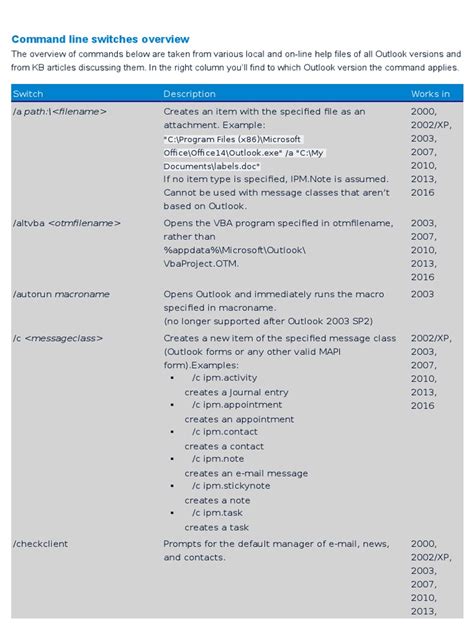 Understanding the Outlook Command Line