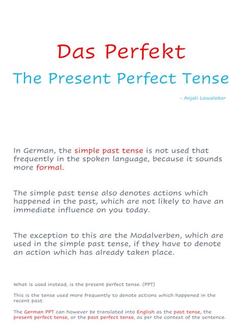 Alright, so what exactly is the Perfekt Deutsch ? In a nutshell, it’s the most common way Germans talk about the past . Yep, you heard that right! While English has its simple past (I ate) and present perfect (I have eaten), German often uses the Perfekt for both. This is a huge point to remember because it means you’ll be using this tense all the time in everyday conversation. Think about it: when you tell someone about your day, what happened last weekend, or a trip you took, you’re almost always going to be reaching for the Perfekt. It’s the workhorse of German past tenses, making it absolutely essential for anyone wanting to sound natural and fluent. Unlike the Präteritum (which is more common in writing and formal speech), the Perfekt is your best friend when you’re chatting with friends, ordering food, or talking about your life. So, when we say it’s important, we really mean it! Mastering the Perfekt opens up a whole new level of communication in German, allowing you to share your experiences and stories with confidence. It bridges the gap between understanding and actively using the language in real-world scenarios.