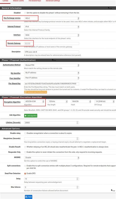 Alright, let’s get into the nitty-gritty of Phase 1 of our IPsec tunnel. This is where the magic happens to set up the initial secure connection between your pfSense firewalls. Think of it as the handshake and introduction process before the actual conversation begins. The goal here is to establish a secure, authenticated channel that will be used to negotiate and manage the security parameters for the actual data transfer, which happens in Phase 2. pfSense gives you a lot of control here, and understanding these settings is key to a stable VPN. We’ll be looking at IKE (Internet Key Exchange) , which is the protocol used for Phase 1. You’ll encounter terms like IKE Version (usually IKEv1 or IKEv2 - IKEv2 is generally preferred for its efficiency and robustness), Authentication Method (most commonly Pre-Shared Key (PSK) for simplicity, or certificates for enhanced security), Encryption Algorithm (like AES-256, AES-128), Hash Algorithm (like SHA256, SHA512), Diffie-Hellman (DH) Group (determining the strength of the key exchange), and Lifetime (how long the Phase 1 security association is valid before re-negotiation). Choosing strong, compatible algorithms and matching settings on both ends is paramount. If these don’t align perfectly, your tunnel simply won’t come up. We’ll guide you through selecting secure defaults and explain what each option does, so you can make informed decisions based on your security requirements and the capabilities of the connecting pfSense boxes. Getting Phase 1 right means you’ve successfully created a secure pathway for establishing the actual data tunnels .