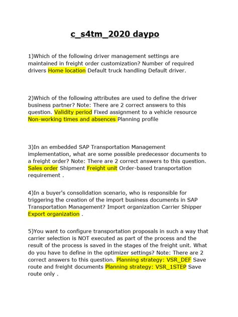 SAP exams are known for being challenging, and the TM certification is no exception. They often test not just your recall of features but your ability to apply them in realistic business scenarios. Expect questions that require you to analyze a given situation and choose the best course of action within SAP TM. For instance, you might get a scenario describing a complex shipment and be asked to select the optimal planning strategy or the correct way to handle a specific exception during execution. Understanding the different modules within SAP TM is crucial: