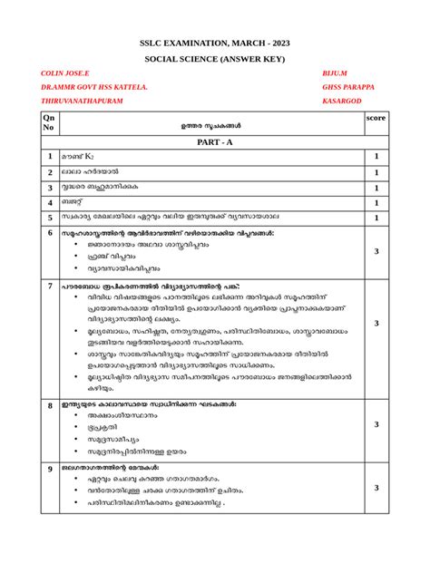SSLC Social Science 2023 Answer Key: Malayalam Medium Guide