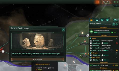 One of the absolute best things about Arcane Deciphering in Stellaris, guys, is how it weaves in so much of the game’s incredible lore. It’s not just random events; these projects are often tied to the deep history and the enigmatic past of the galaxy. Think about it – Stellaris isn’t just a sandbox; it’s a universe filled with the echoes of fallen empires, the mysteries of precursor civilizations, and the whispers of cosmic horrors. Arcane Deciphering is the primary way the game allows you to interact with and uncover these hidden narratives. When you’re researching an artifact, for instance, you’re not just gathering data points; you’re piecing together fragments of a story that could span millennia. You might be uncovering the fate of a long-lost galactic empire, understanding the technology that led to their downfall, or perhaps discovering the secrets of their rise to power. The Arcane Deciphering mechanic acts as a narrative bridge, connecting your current playthrough to the vast, overarching history of the Stellaris universe. It provides context for the ruins you find, the derelict ships you encounter, and the strange signals you detect. It transforms them from mere points of interest into windows into the past. Some deciphering projects might reveal information about the Precursors , those enigmatic ancient races that seeded the galaxy with their technology and mysteries. Unraveling their secrets can lead to powerful rewards and a deeper understanding of the galaxy’s origins. Others might delve into the origins of specific species, their unique biological quirks, or their ancient conflicts. This constant drip-feed of lore makes the galaxy feel much more alive and storied. It’s like reading chapters of an epic novel, where each discovery adds another layer to the grand tapestry of the Stellaris universe. The Arcane Deciphering system ensures that exploration isn’t just about finding habitable planets or resources; it’s about unearthing history, solving cosmic puzzles, and understanding the forces that shaped the galaxy you now inhabit. The emergent narratives that arise from these projects are often some of the most memorable moments in a Stellaris game, creating unique stories that are yours alone. It’s this dedication to world-building through gameplay mechanics that makes Stellaris such a captivating experience for players who love a good story alongside their grand strategy. So, the next time you’re deciphering something strange, remember you’re not just playing a game; you’re becoming an archaeologist of the stars, uncovering the secrets that lie buried beneath the surface of known space.