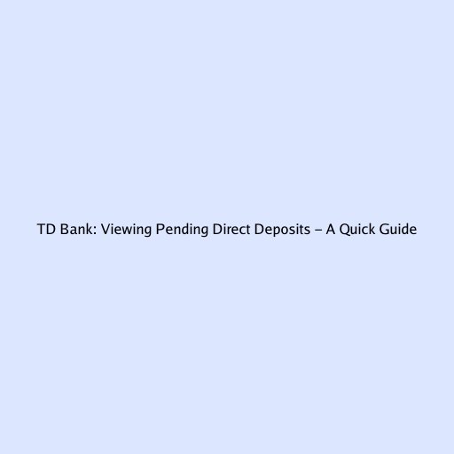 TD Bank: Viewing Pending Direct Deposits - A Quick Guide