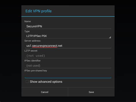 4. Select L2TP/IPsec PSK for the VPN type.
