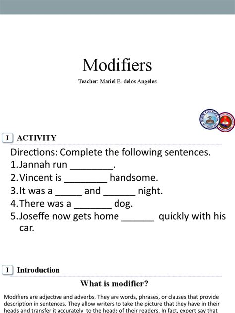 Alright, let’s break it down. Adjective modifiers are essentially words or phrases that describe or qualify a noun or pronoun. They’re the sidekicks that give us more information about the main character – the noun. Think of them as little spotlights, shining light on specific qualities. They answer questions like ‘What kind?’, ‘Which one?’, or ‘How many?’. For instance, in the sentence ‘The fluffy white cat slept on the warm rug ,’ ‘fluffy’ and ‘white’ modify ‘cat,’ telling us what kind of cat it is. Similarly, ‘warm’ modifies ‘rug,’ letting us know what kind of rug. It’s pretty straightforward, right? But here’s where it gets really cool: modifiers aren’t just single adjectives. They can also be phrases or even other clauses that act like adjectives. We call these adjectival phrases and adjectival clauses . For example, ‘the cat with the green eyes ’ uses a prepositional phrase (‘with the green eyes’) to describe the cat. And ‘the book that I borrowed ’ uses a relative clause (‘that I borrowed’) to identify a specific book. These add layers of detail and specificity that make your writing richer and more engaging. So, when we talk about adjective modifiers, we’re covering everything from single, powerful words to more complex structures that all serve the same purpose: to paint a clearer, more vivid picture for your reader. It’s all about adding that extra layer of awesome to your sentences, making them more descriptive and impactful. Remember, the goal is to provide relevant and interesting details without overwhelming your audience. It’s a balancing act, but once you get the hang of it, your writing will feel so much more alive!