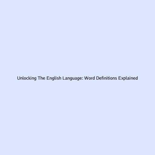Unlocking the English Language: Word Definitions Explained