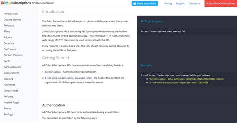 The Zoho Subscriptions API opens up a world of possibilities for managing your subscription-based business. It allows you to programmatically interact with your Zoho Subscriptions account, automating tasks such as creating subscriptions, managing customers, processing payments, and generating reports. Instead of manually handling these operations through the Zoho Subscriptions interface, you can use the API to build custom integrations and streamline your workflows. Think of it as having a digital assistant that works tirelessly behind the scenes, freeing you up to focus on growing your business.