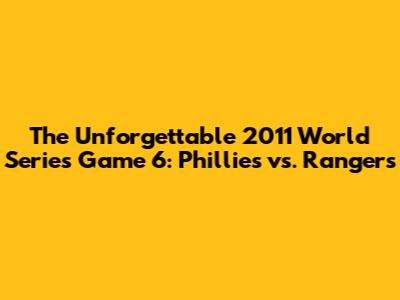 What's up, baseball fanatics! Today, we're rewinding the clock to one of the most nail-biting games in recent baseball history: Game 6 of the 2011 World Series. This was a clash of titans, a showdown between the Philadelphia Phillies and the Texas Rangers that had fans on the edge of their seats. If you're looking for a game that defined grit, determination, and sheer baseball drama, you've come to the right place. We're diving deep into the moments that made this game legendary, exploring the key players, the pivotal plays, and the atmosphere that made it a truly unforgettable night. So grab your popcorn, settle in, and let's relive the magic of this epic contest.