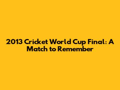 Hey sports fans! Let's rewind the clock and dive into the thrilling 2013 Cricket World Cup Final. It was a day etched in the memories of cricket enthusiasts worldwide. The air crackled with anticipation, the crowd roared with every boundary, and the tension was palpable as two cricketing giants clashed for the ultimate prize. This match wasn't just about runs and wickets; it was a saga of skill, strategy, and sheer determination. So, grab your virtual popcorn, and let's relive the magic of this epic encounter, exploring the key moments, star performances, and the legacy it left behind. Trust me, it's a story you won't want to miss! We're talking about a game that had everything – nail-biting finishes, unexpected heroes, and moments of pure cricketing brilliance.