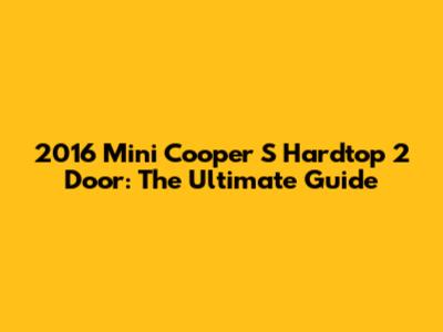 2016 Mini Cooper S Hardtop 2 Door: Ultimate Guide