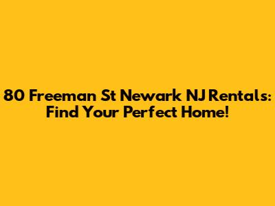 80 Freeman St Newark NJ: Find Your Perfect Rental!
