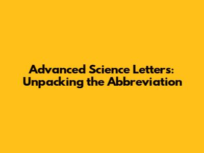 Advanced Science Letters: What's The Abbreviation?