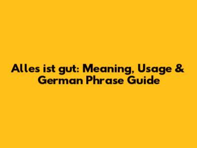 Alles Ist Gut: Meaning, Usage & German Phrase Guide