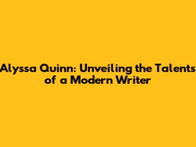 Alyssa Quinn: Unveiling The Talents Of A Modern Writer
