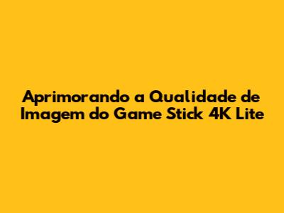 Aprimorando A Qualidade De Imagem Do Game Stick 4K Lite