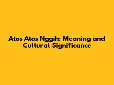 Atos Atos Nggih: Meaning And Cultural Significance