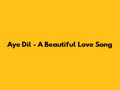 Aye Dil - A Beautiful Love Song
