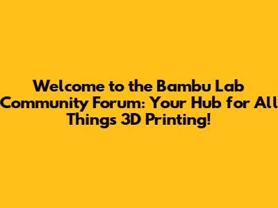 Hey everyone, and welcome to the official Bambu Lab Community Forum! If you're passionate about 3D printing, love tinkering with your Bambu Lab printer, or are just getting started and looking for some guidance, you've landed in the right spot. This isn't just any online space; it's a vibrant, thriving ecosystem designed for users like you to connect, share knowledge, troubleshoot issues, and celebrate all the amazing creations made with Bambu Lab machines. We're stoked to have you here, and we can't wait to see what you'll bring to the table. Whether you're a seasoned pro with thousands of hours under your belt or a complete newbie who just unboxed their first printer, the Bambu Lab Community Forum is your go-to resource. Dive in, explore, and become an integral part of our growing family. We've built this platform to foster collaboration and innovation, making the 3D printing journey smoother and more enjoyable for everyone. So grab a coffee, get comfortable, and let's get printing!