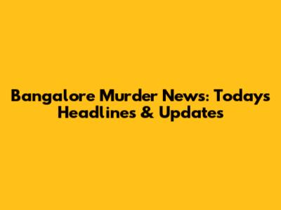 Bangalore Murder News: Today's Headlines & Updates