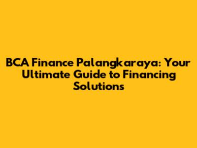 BCA Finance Palangkaraya: Your Guide To Financing Solutions
