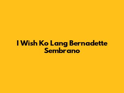 Hey guys! Ever caught an episode of I Wish Ko Lang hosted by the amazing Bernadette Sembrano? If not, you're seriously missing out! This show isn't just another TV program; it's a rollercoaster of emotions, hope, and heartwarming stories that stick with you long after the credits roll. Bernadette Sembrano, with her genuine empathy and heartfelt approach, brings these stories to life in a way that makes you feel like you're right there with the people she's featuring. Let's dive into why I Wish Ko Lang, under Bernadette's guidance, is such a powerful and important show.