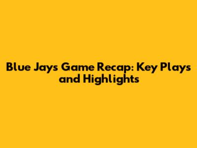 Blue Jays Game Recap: Key Plays And Highlights