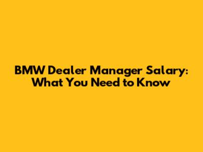 BMW Dealer Manager Salary: What You Need To Know