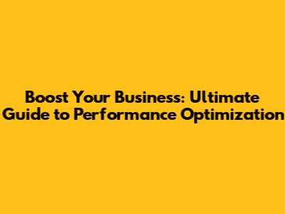 Boost Your Business: Ultimate Guide To Performance Optimization
