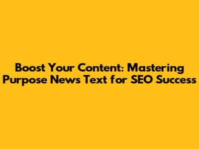 Boost Your Content: Mastering Purpose News Text For SEO Success