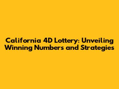 California 4D Lottery: Your Winning Numbers & Strategies