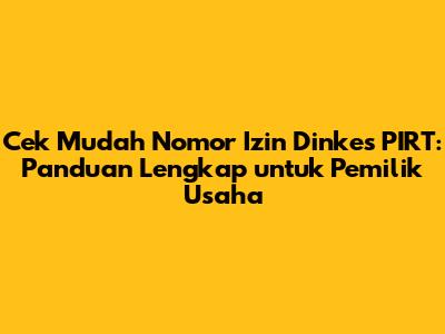 Hai, guys! Kalian yang lagi menjalankan usaha makanan atau minuman skala rumahan pasti sudah gak asing lagi dengan yang namanya PIRT, kan? PIRT atau Produk Industri Rumah Tangga ini adalah izin edar yang wajib dimiliki oleh produk pangan olahan yang diproduksi oleh industri rumah tangga. Nah, salah satu hal penting yang perlu kalian ketahui adalah cara cek nomor izin Dinkes PIRT. Jangan khawatir, prosesnya gak ribet kok! Artikel ini akan memberikan panduan lengkap dan mudah dipahami, supaya kalian bisa memastikan produk kalian sudah terdaftar dan legal. Kita akan bahas secara detail mulai dari pengertian PIRT, manfaatnya, cara cek nomor izinnya, sampai tips-tips penting lainnya. Yuk, simak baik-baik!