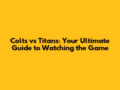Colts Vs Titans: Your Ultimate Guide To Watching The Game