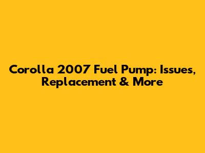 Corolla 2007 Fuel Pump: Issues, Replacement & More