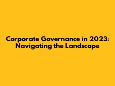 The Evolution of Corporate Governance: A 2023 Perspective