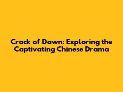 Crack Of Dawn: Exploring The Captivating Chinese Drama