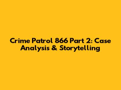 Crime Patrol 866 Part 2: Case Analysis & Storytelling